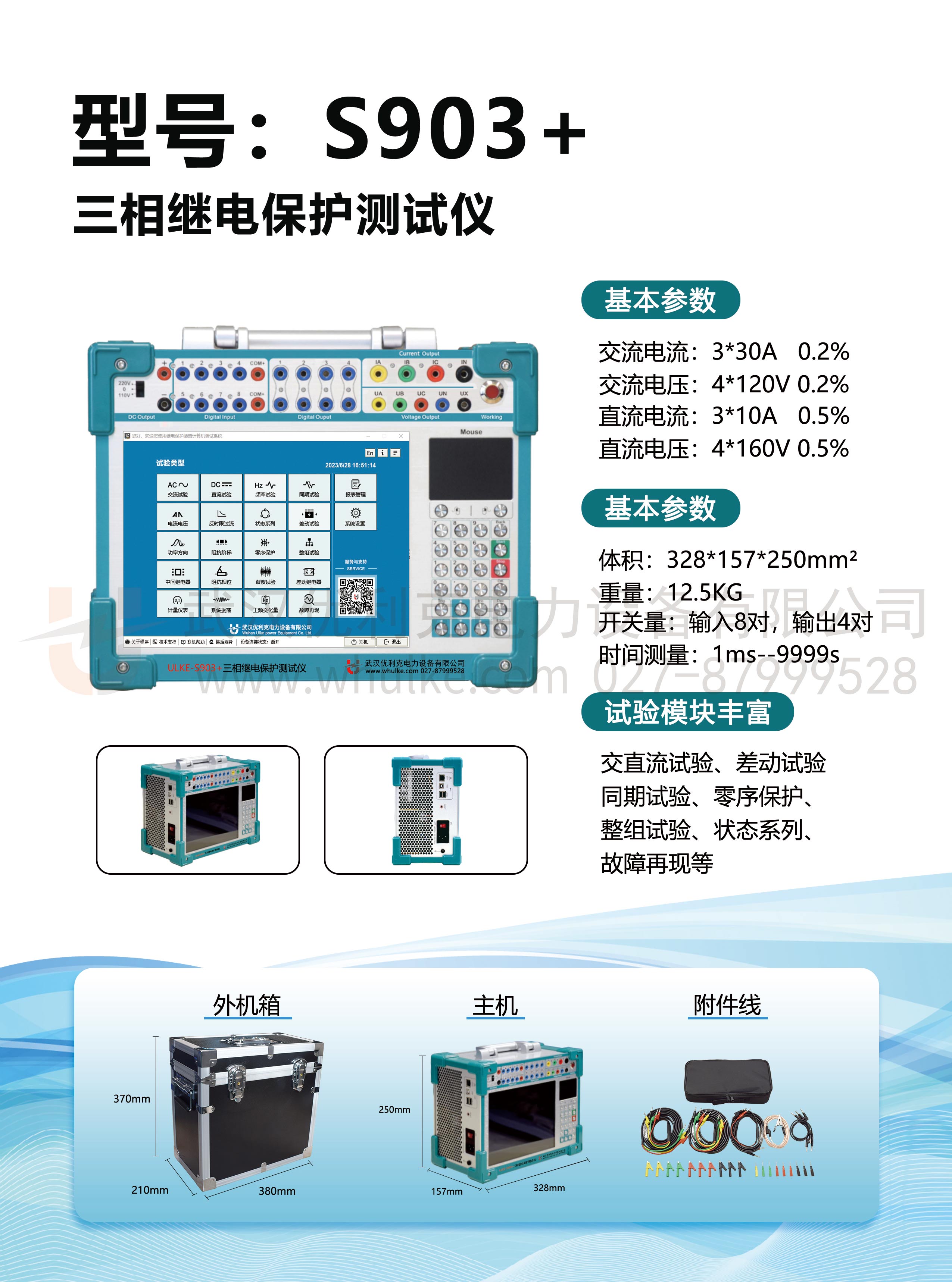• ULKE - S903 +:作為中高端型號,擁有強大的三相電流電壓輸出能力,可模擬復雜電力系統故障場景。其高精度的信號輸出與