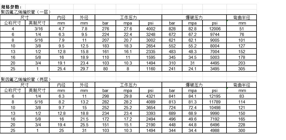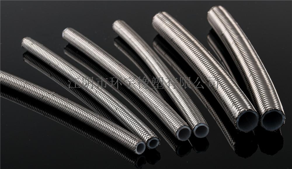 聚四氟乙烯編織管是由聚四氟乙烯管外加一層或多層不銹鋼絲編織而成,編織后能承受較高的壓力。不銹鋼絲編織層是聚四氟乙烯軟管的主要承壓件, 同時(shí)對(duì)聚四氟乙烯管起到保護(hù)作用??蛻艨梢愿鶕?jù)不同的工作壓力選擇一層或者多層編織。