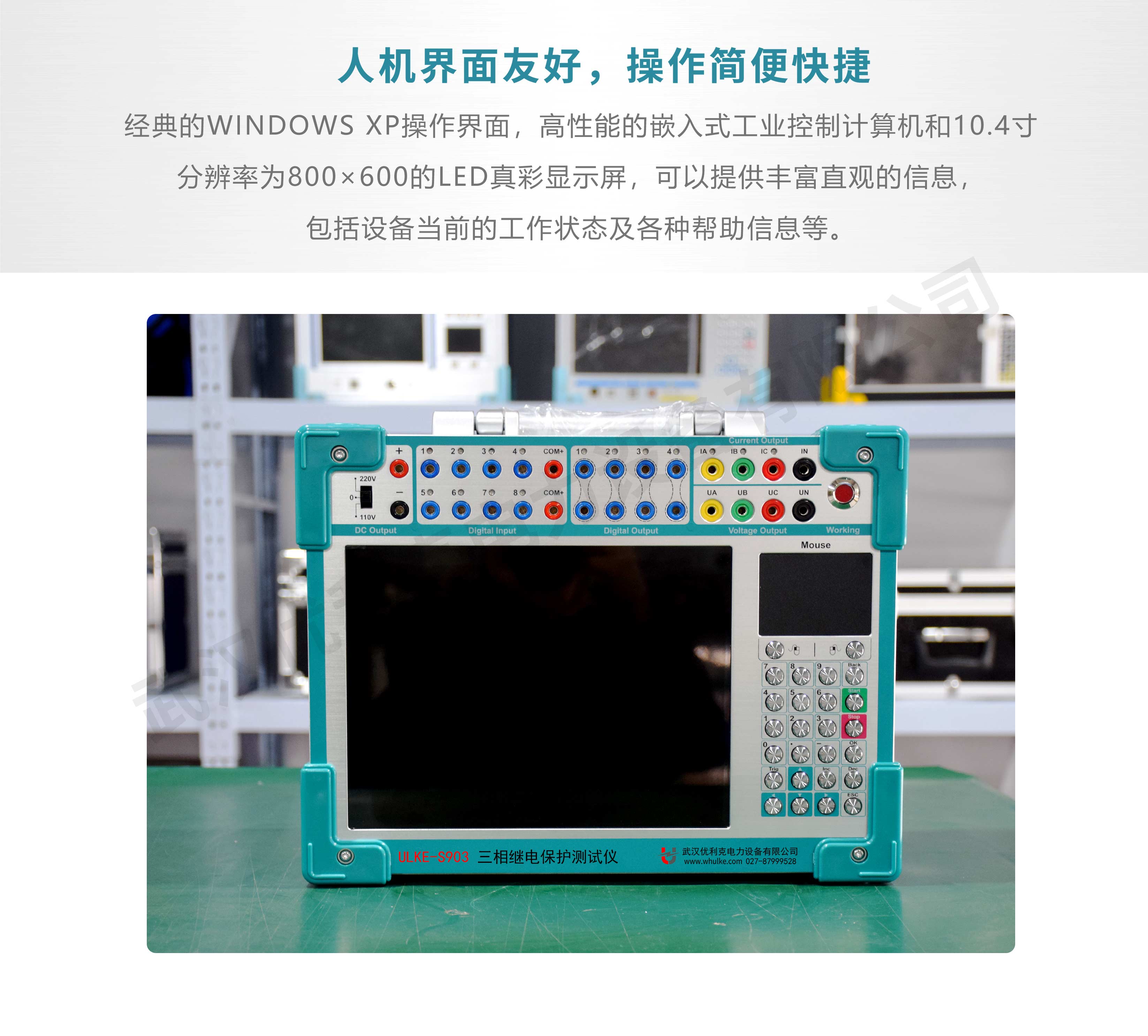 3.經典的Windows XP操作界面,人機界面友好,操作簡便快捷;高性能的嵌入式工業控制計算機和10.4寸分辨率為800×600的LED真彩顯示屏,可以提供豐富直觀的信息,包括設備當前的工作狀態及各種幫助信息等。