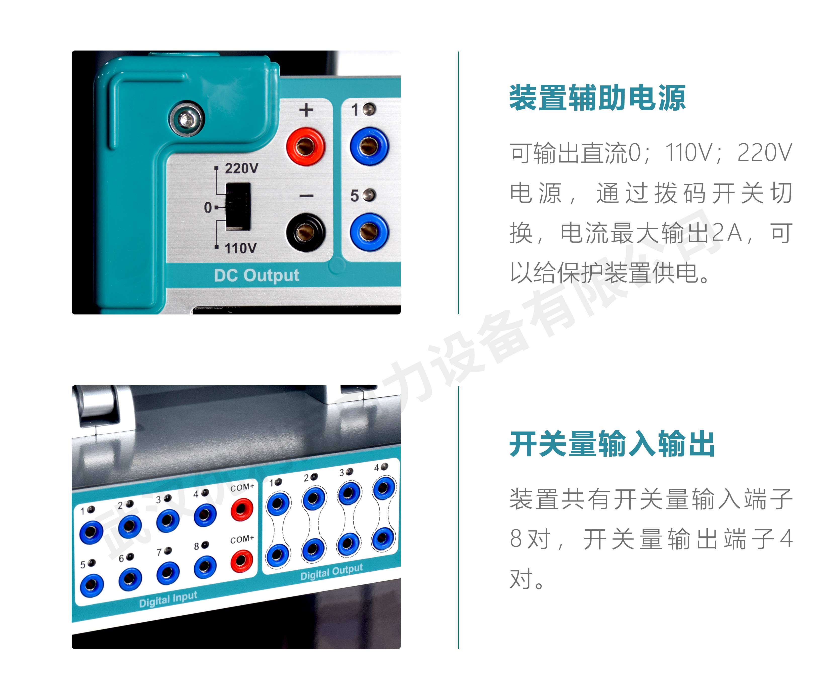 11.配有獨立專用直流輔助電壓源輸出,輸出電壓分別為110V(1A),220V(0.6A)。以提供給需要直流工作電源的繼電器或保護裝置使用。