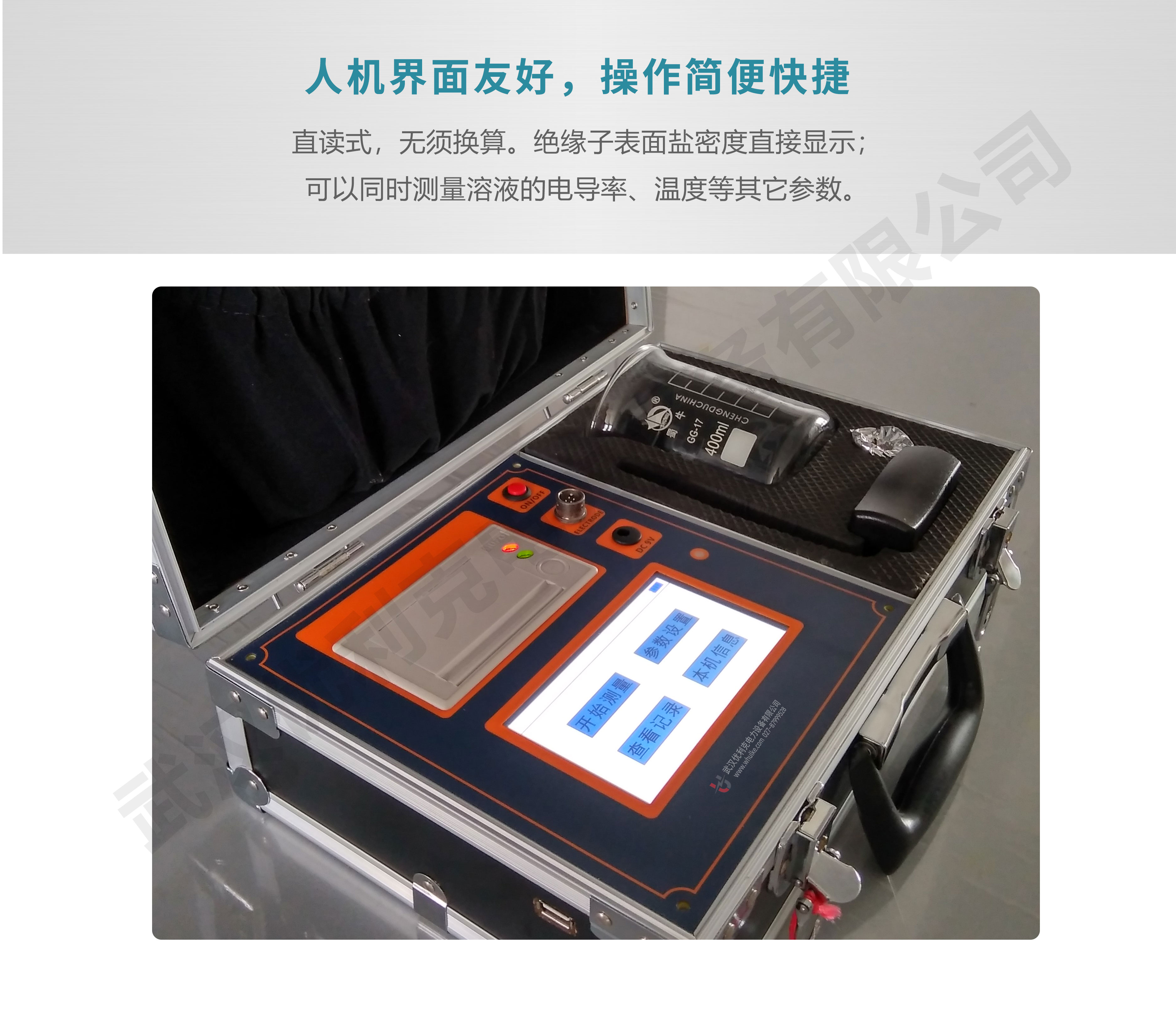 直讀式,無(wú)須換算。絕緣子表面鹽密度直接顯示;可以同時(shí)測(cè)量溶液的電導(dǎo)率、溫度等其它參數(shù)
